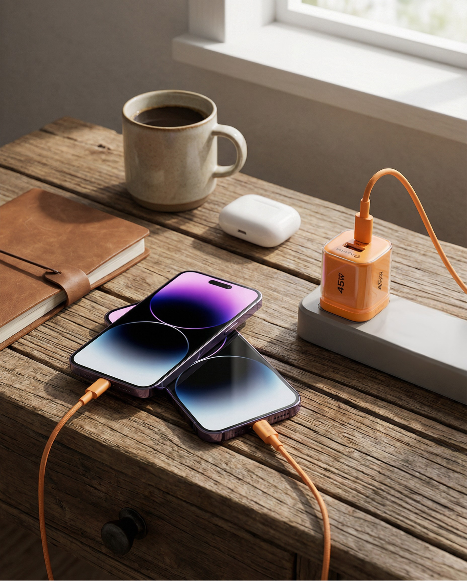 Απόλαυσε ταχύτατη φόρτιση σε iPhone, Android και laptop χάρη στην ισχύ 45W μέσω USB-C PD 3.0 — έως 3 φορές ταχύτερη από τους κοινούς φορτιστές.
