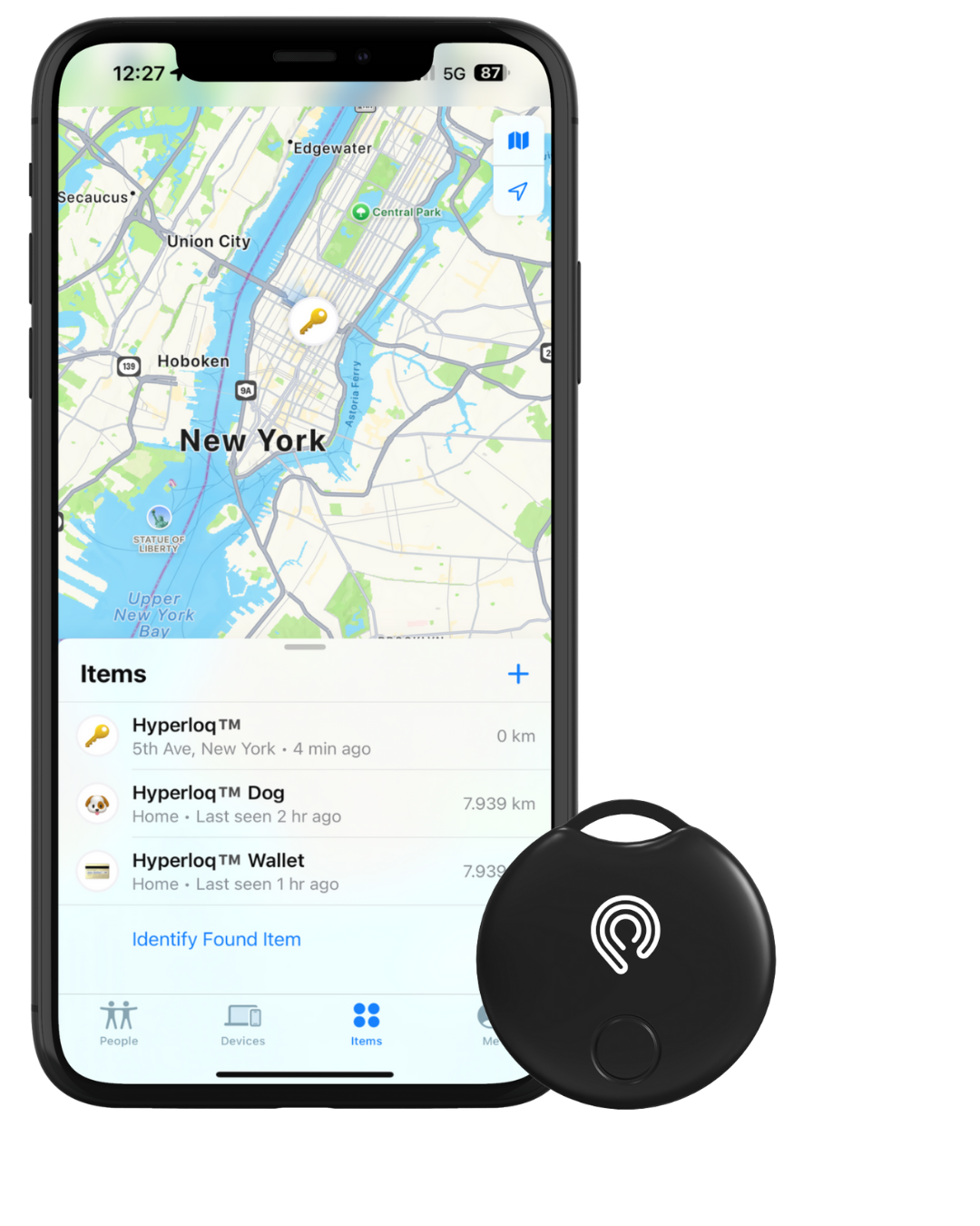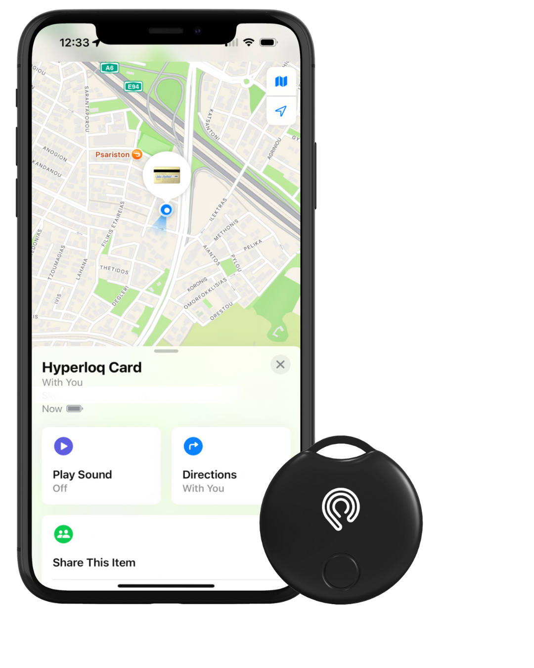 Το Hyperloq™ Smart GPS Tag συνδέεται με το iPhone σας μέσω της εφαρμογής Apple Find My (Εύρεση) ή με Android συσκευές μέσω της εφαρμογής Google Find My Device και χρησιμοποιεί τη δωρεάν εφαρμογή για τον εντοπισμό των αντικειμένων σας. Είτε βρίσκεται πάνω σε κλειδιά, πορτοφόλια ή τσάντες, η συσκευή στέλνει ένα ασφαλές σήμα που μπορείτε να παρακολουθείτε στην εφαρμογή του τηλεφώνου σας, ώστε να βρίσκετε γρήγορα τα προσωπικά σας αντικείμενα.